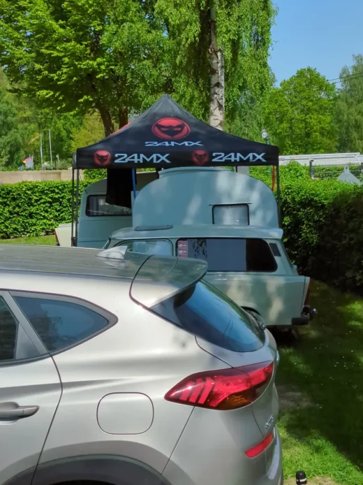 So, Reisestart wie letzte 2 Jahre wieder Nähe Bielefeld, wg. Enkelgeburtstag. Nochmal einige neue Bilder von unseren Platznachbarn mit Trabis und passenden Wohnwagen. Caravans auch aus den neuen Bundesländern. Der linke Wagen klein, der...